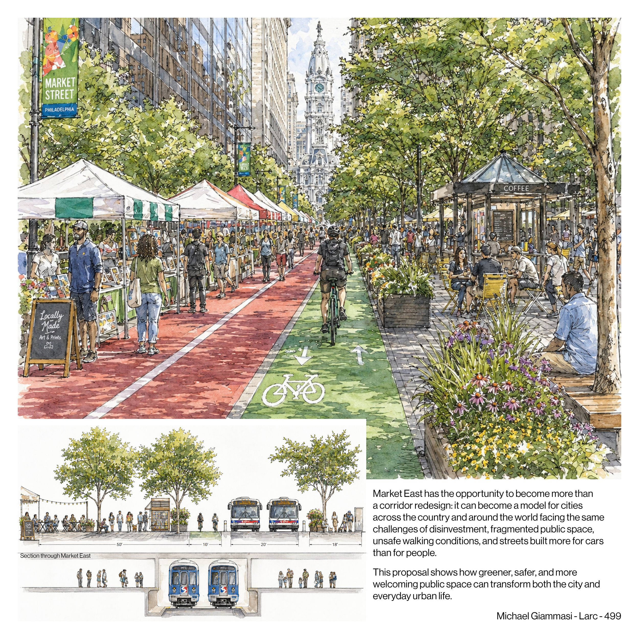 In that sense, this proposal is not only about one corridor in Philadelphia. It is about creating a replicable model for other cities facing similar conditions. Market East can show how thoughtful investment in the public realm can reshape urban life, strengthen community identity, and set a new standard for what major city streets can become.